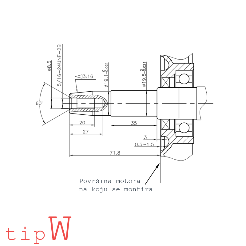 Suprotno kazaljci na satu (gledano od strane PTO)